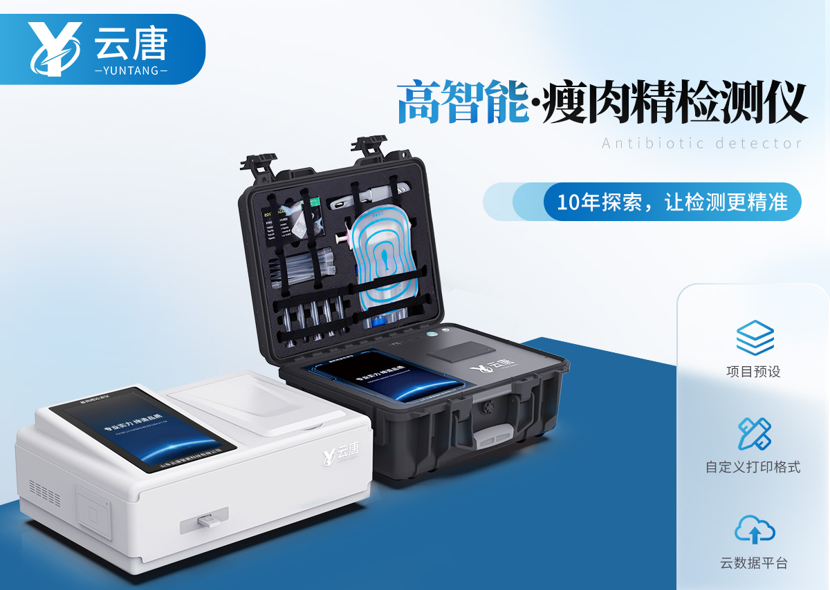山東云唐智能科技有限公司生產(chǎn)的瘦肉精檢測(cè)儀可現(xiàn)場(chǎng)快速檢測(cè)鹽酸克倫特羅、萊克多巴胺、沙丁胺醇、己烯雌酚、喹乙醇等。儀器預(yù)留其他項(xiàng)目檢測(cè)程序和端口,根據(jù)日后需求可進(jìn)行遠(yuǎn)程設(shè)備升級(jí)。日后可升級(jí)為檢測(cè)抗生素、獸藥殘留、動(dòng)物疫病等檢測(cè)項(xiàng)目的綜合類(lèi)型儀器。